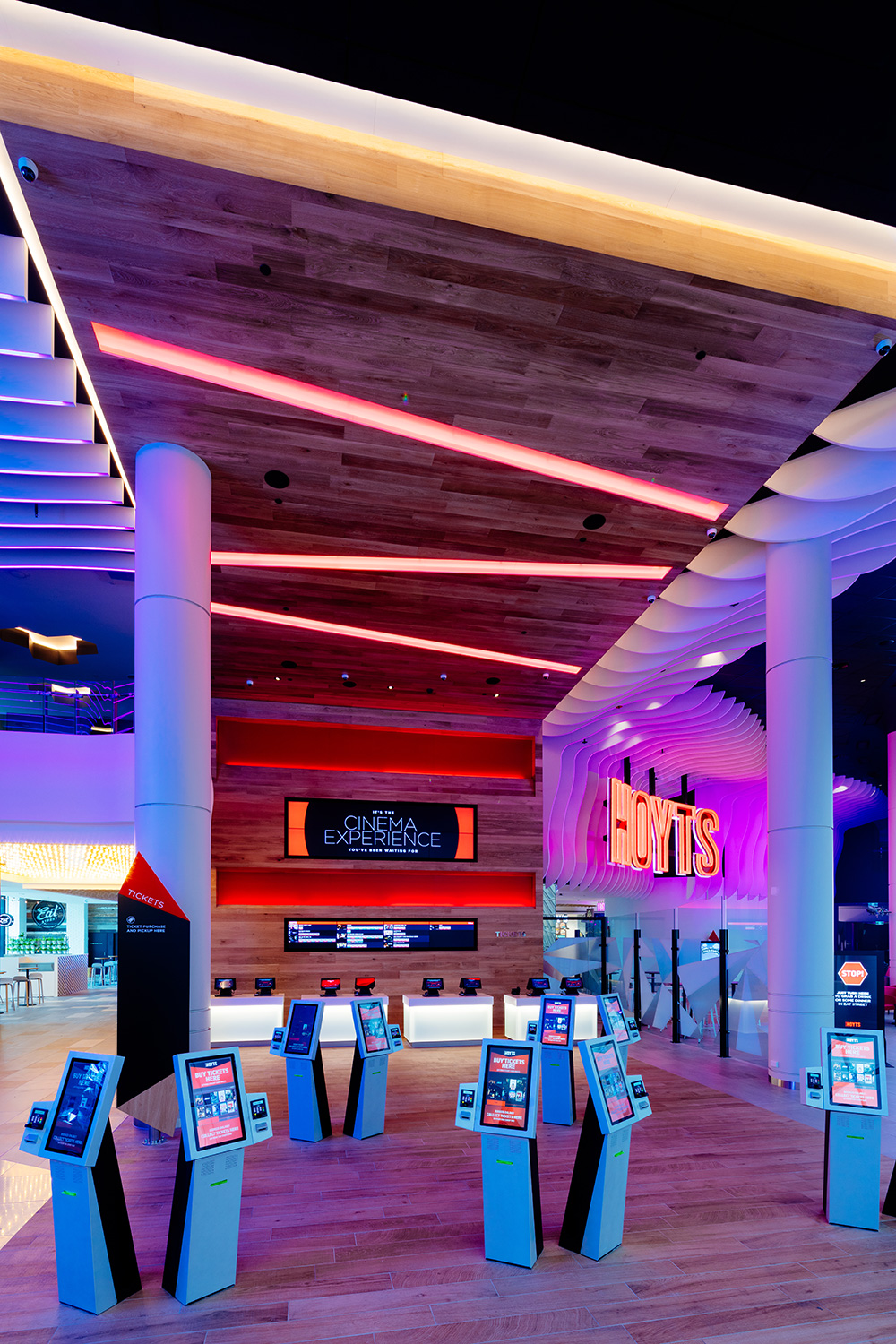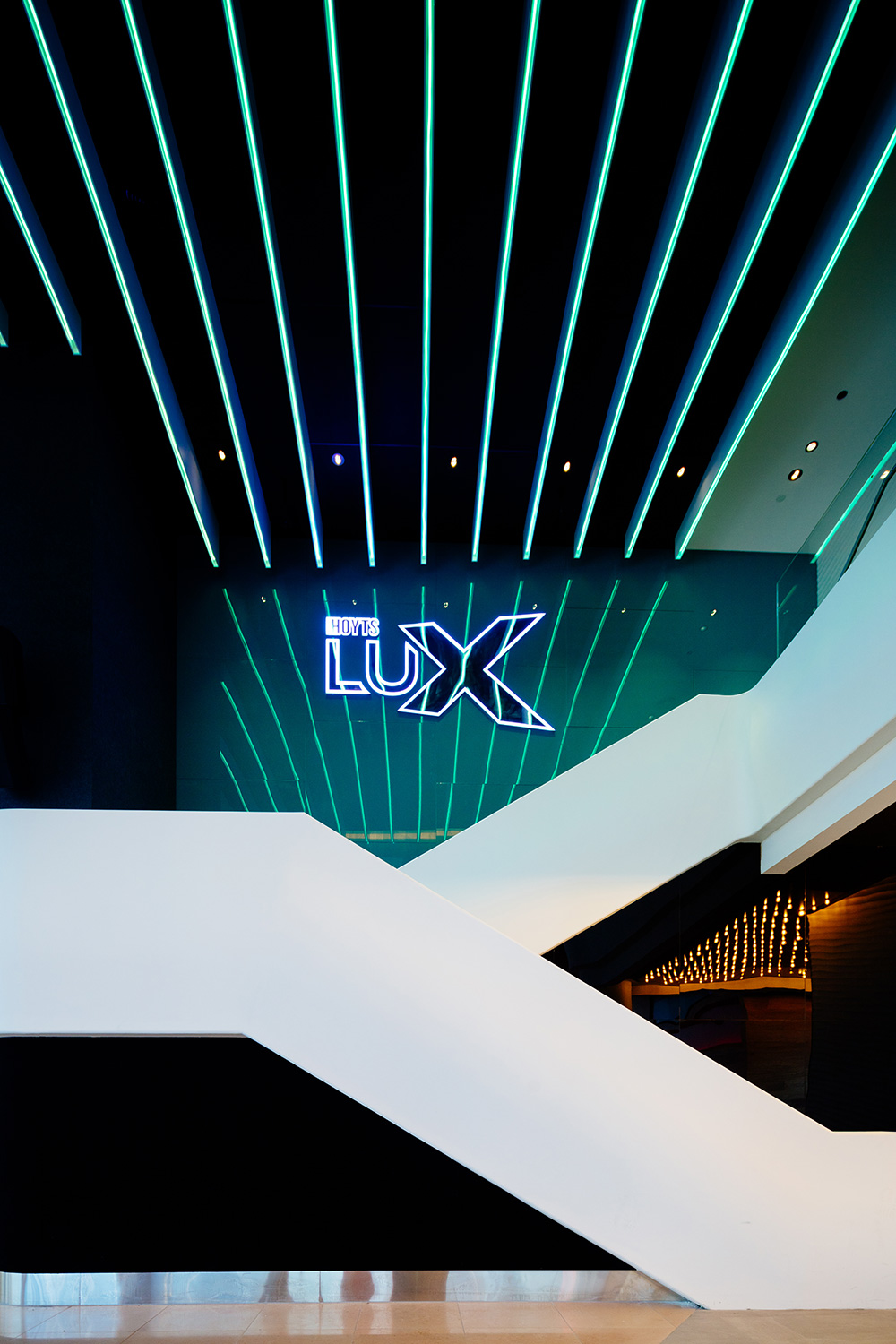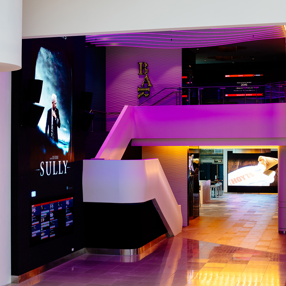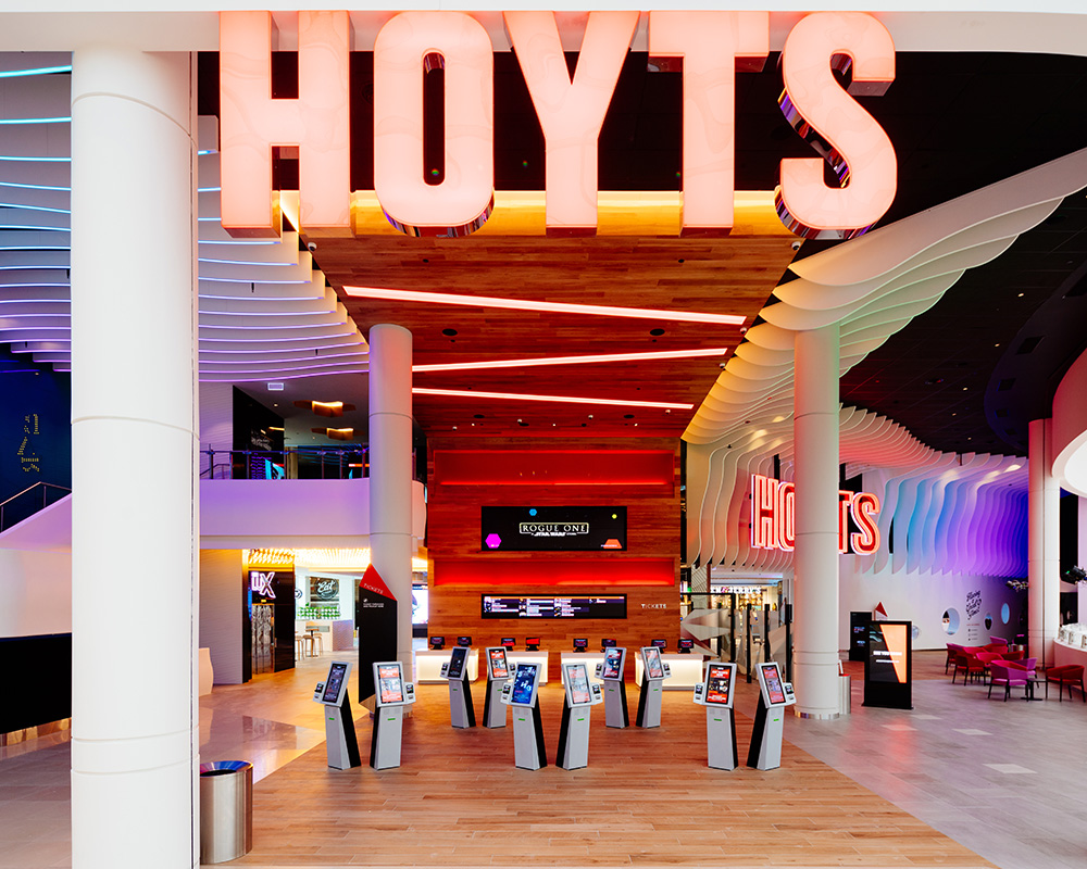 Long Contracting undertook the biggest Hoyts fitout in Australia at the Chadstone Shopping Centre. Works consist of constructing 12 new spacious cinemas with recliners including 2 extreme screen cinemas with the first ever cinema to house a laser projector screen. Upstairs is the premium lux lounge area consisting of a bar and hex feature ceiling.