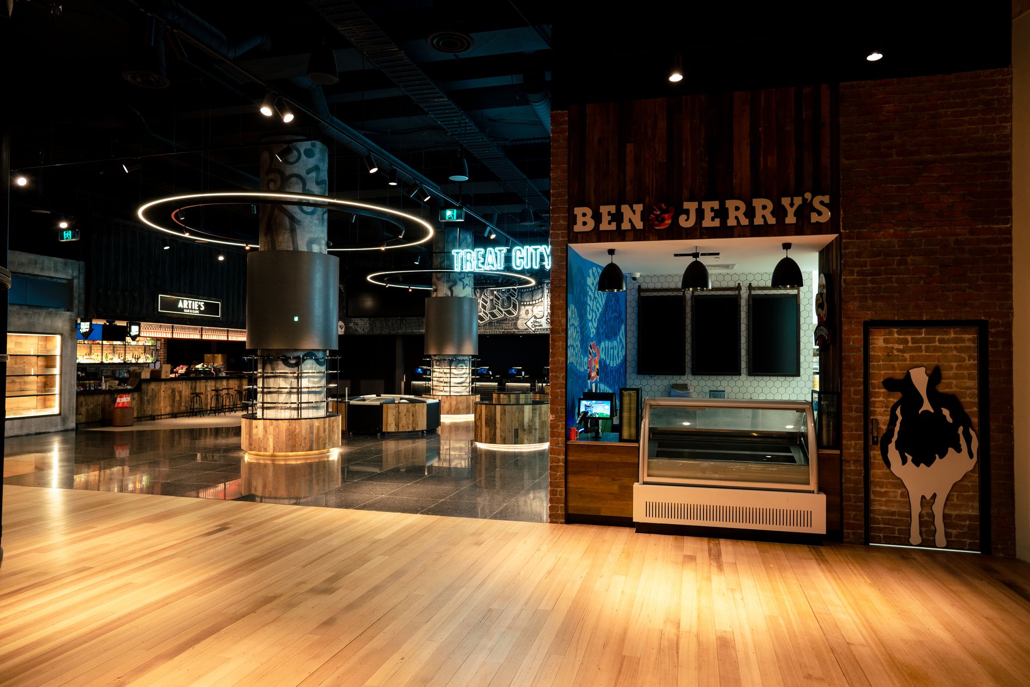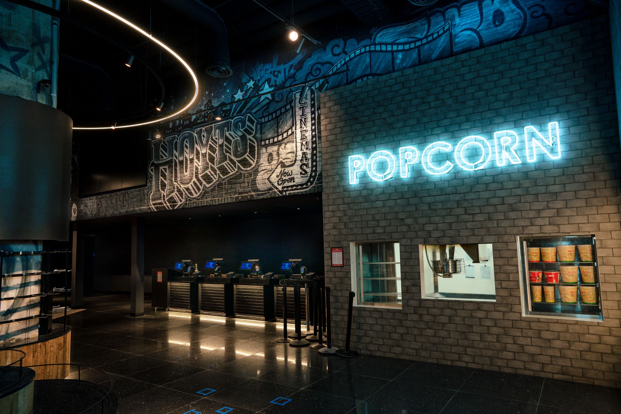 Long Contracting were engaged to complete the 4 staged redevelopment of Hoyts Highpoint. From the moment you walk into the open plan layout, you are met with floor to ceiling interactive curved LED screens. The intelligent foyer design allows patrons to move seamlessly through the candy bar foyer area into the state-of-the-art recliner cinemas.