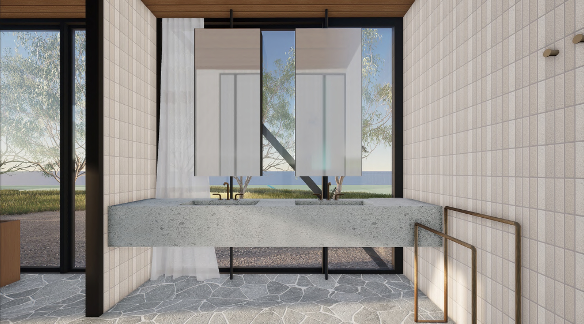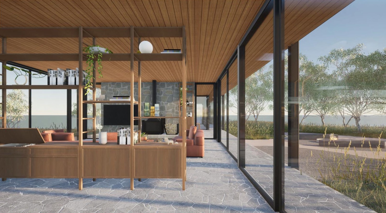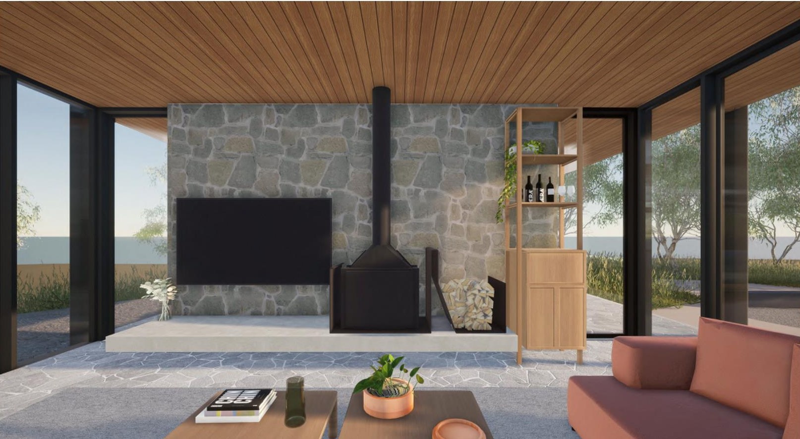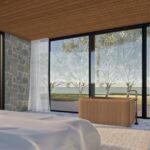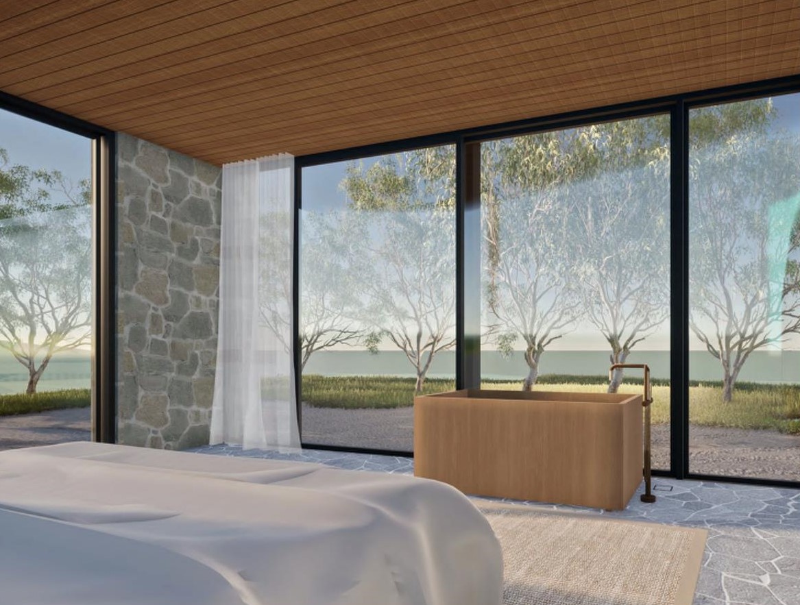 Inside, the residence exudes tranquility with Antique Calcetta Limestone flooring laid throughout and a gourmet kitchen which is equipped with Sub Zero and Wolf Appliances. The main living and retreat spaces feature Cheminees Philippe Radiante Wood Heater sitting on concrete plinths. When in the master bedroom you can relax in the cedar bath which provides captivating views and a serene ambiance. A separate wing has been created for guests accommodating 3 bedrooms with ensuites.