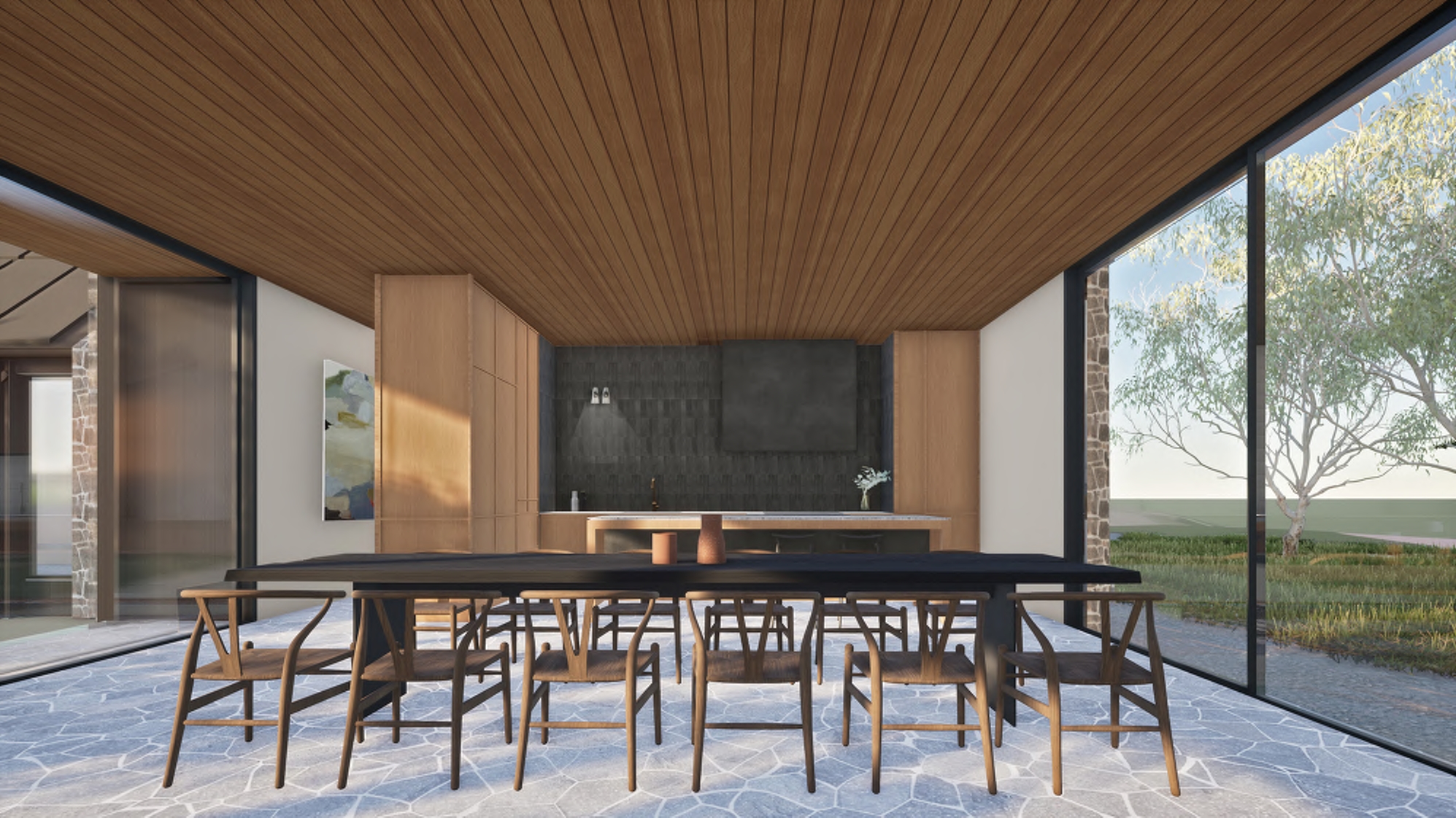 Situated in central Victoria at the base of Mt Buller snow fields and Lake Eildon on approx. 60 hectares sits Lanky Farmhouse. Long Contracting were engaged by a Melbourne client to build this outstanding architecturally designed residence. With a 45 degree pitched roof line, Hotham stone and Shou Sugi Ban façade and a sculpturally designed garden, you will find a heated pool and spa nestled close to the house.
