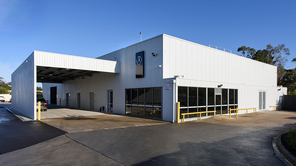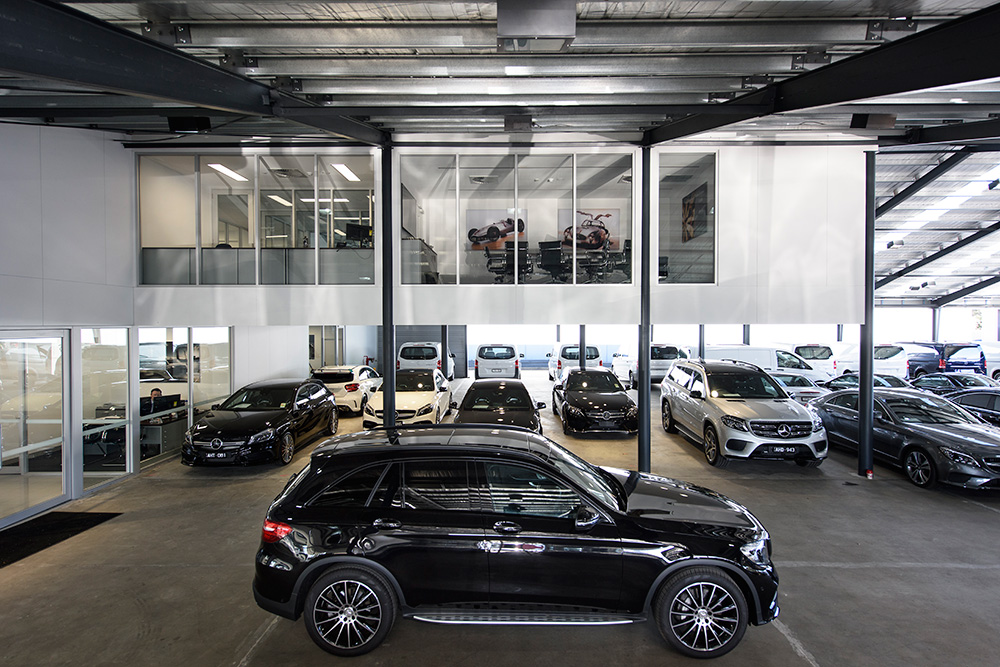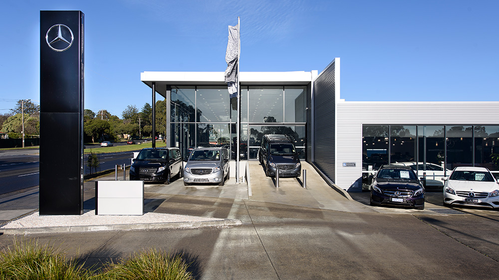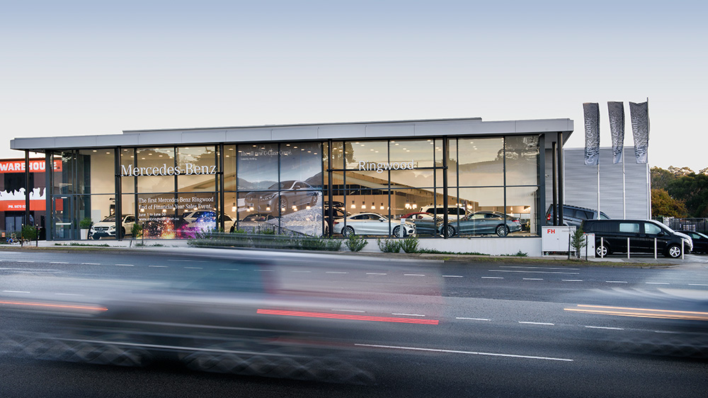 Completed October 2015 the new Mercedes Benz Dealership directly off Maroondah Highway compromises 4270m2 of showroom and used car floor. With an elevated front showroom, the glass facade has a large presence as you come over the hill from the city. Hidden deep on this large site is a state of the art manual and automatic carwash areas as well as car detailing bays. These ensure that all vehicles are in pristine condition after they leave the newly renovated 1300m2 workshop building.