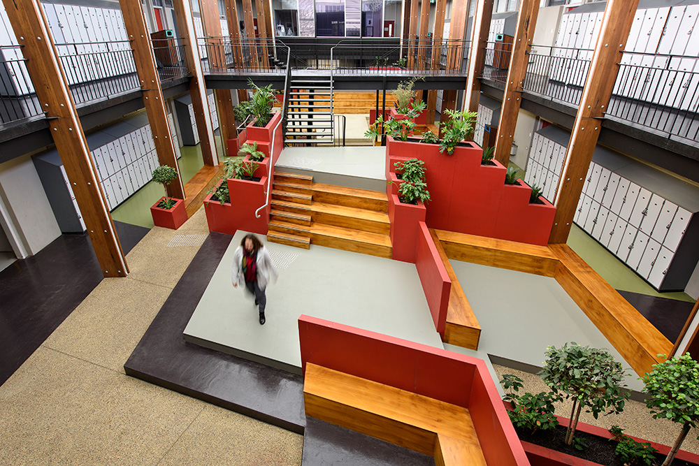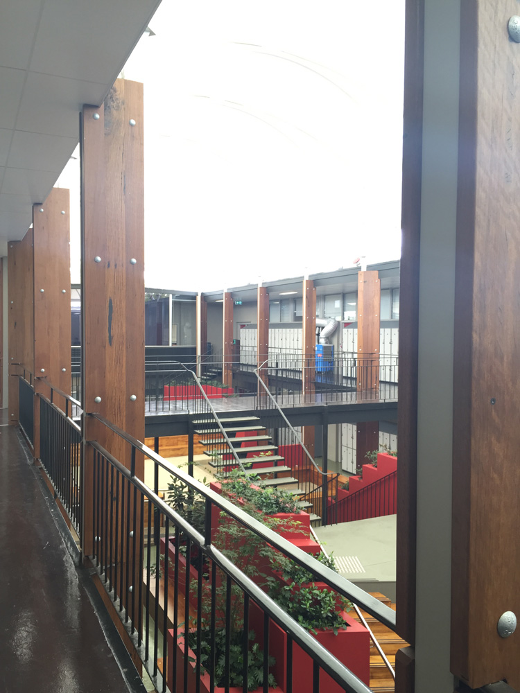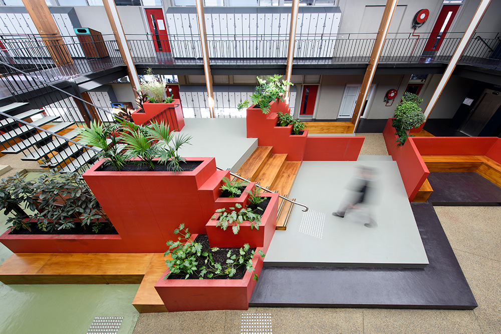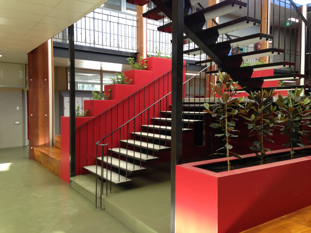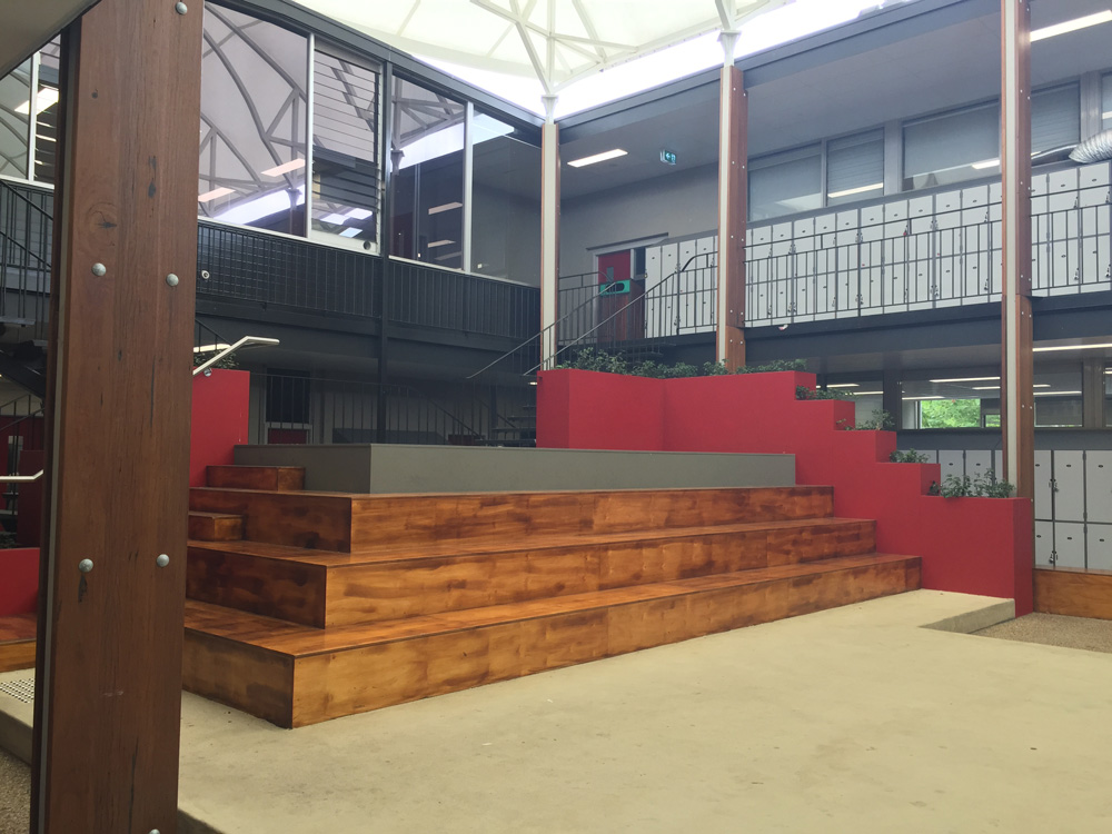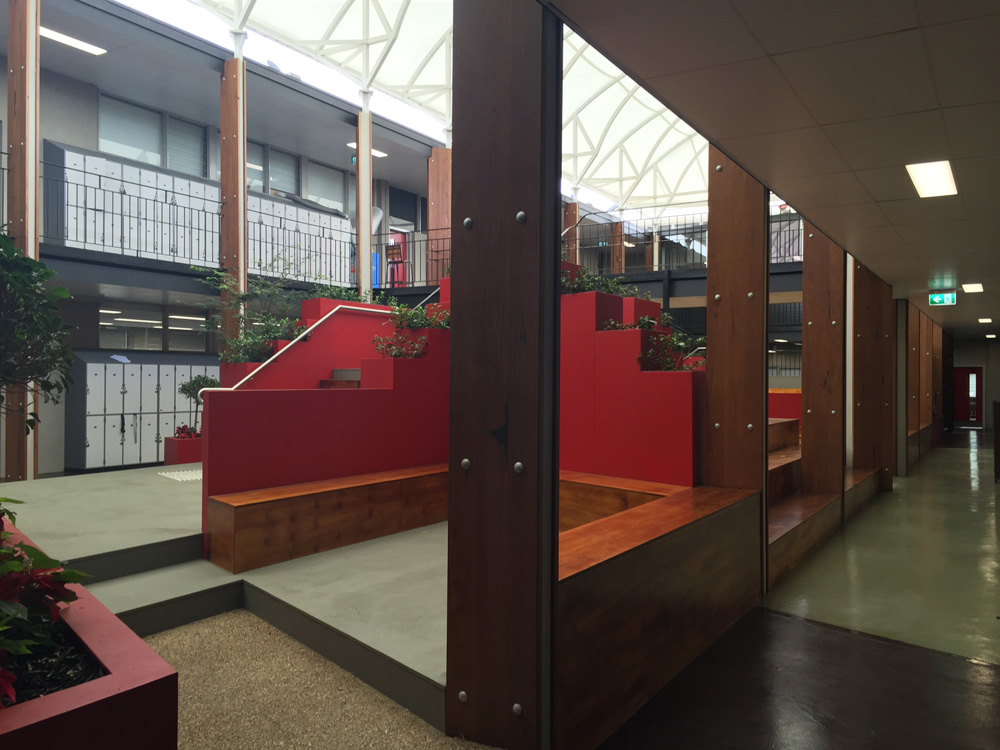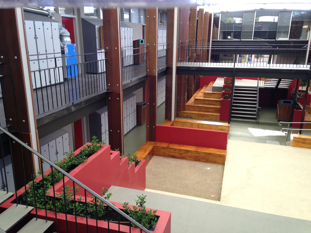 Tasked with rejuvenating an old tired indoor courtyard area, Long Contracting helped redesign the courtyard to create a more flexible space for interaction between students. Incorporating recycled materials and eco-friendly indoor/outdoor plaster boxes, the courtyard has given life to a once unnoticed and unloved area.